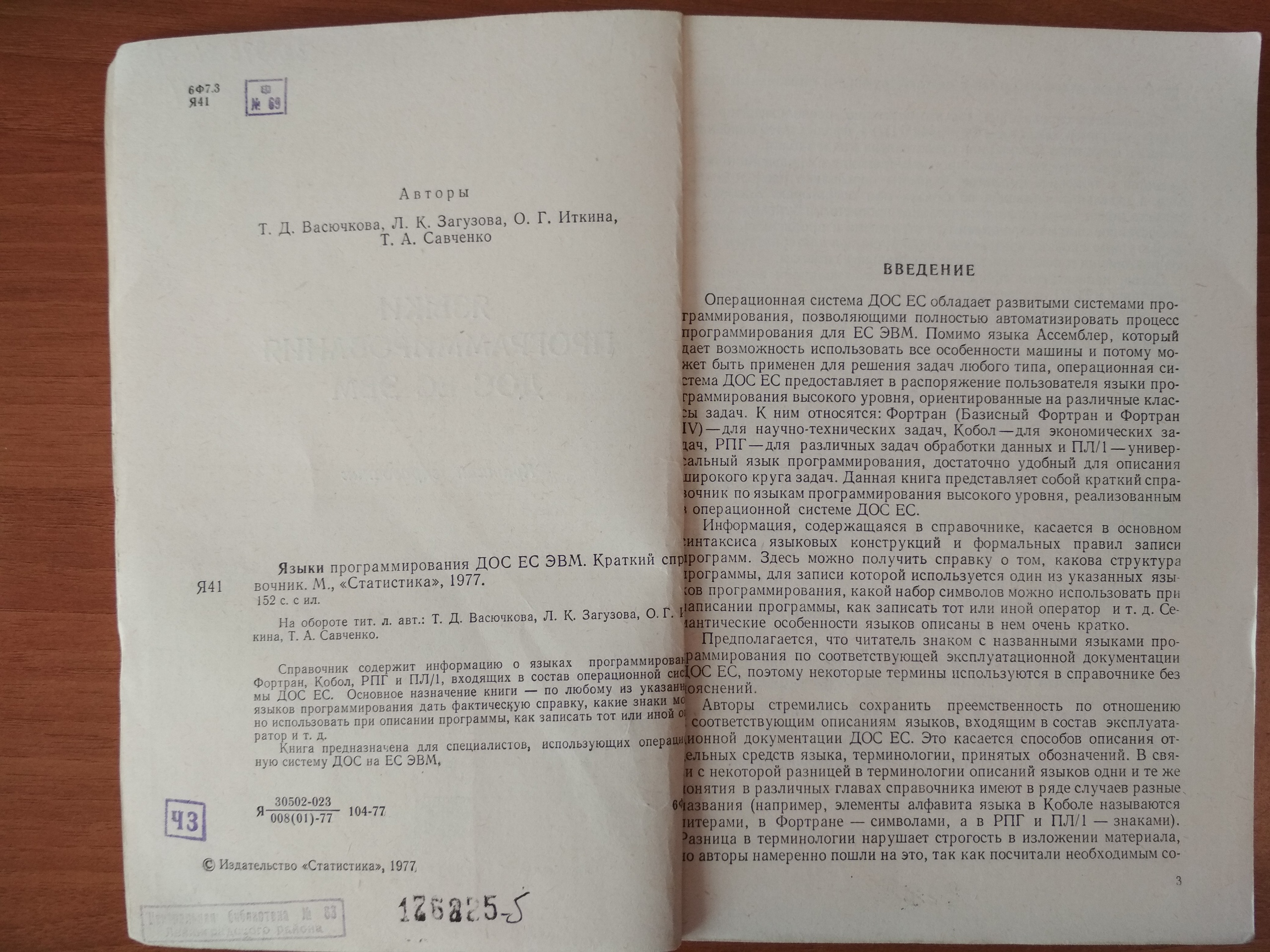 18. Языки программирования ДОС ЕС ЭВМ. Статистика. 1977.